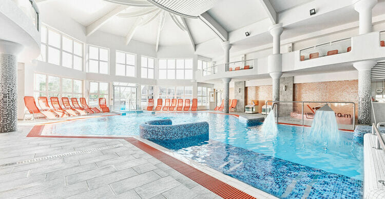 - Indoor and outdoor pools with healing water (32-34°C), rich in minerals, beneficial for skin, muscles, and joints. Help improve blood circulation, relieve tension and stress, and alleviate back and lumbar pain
