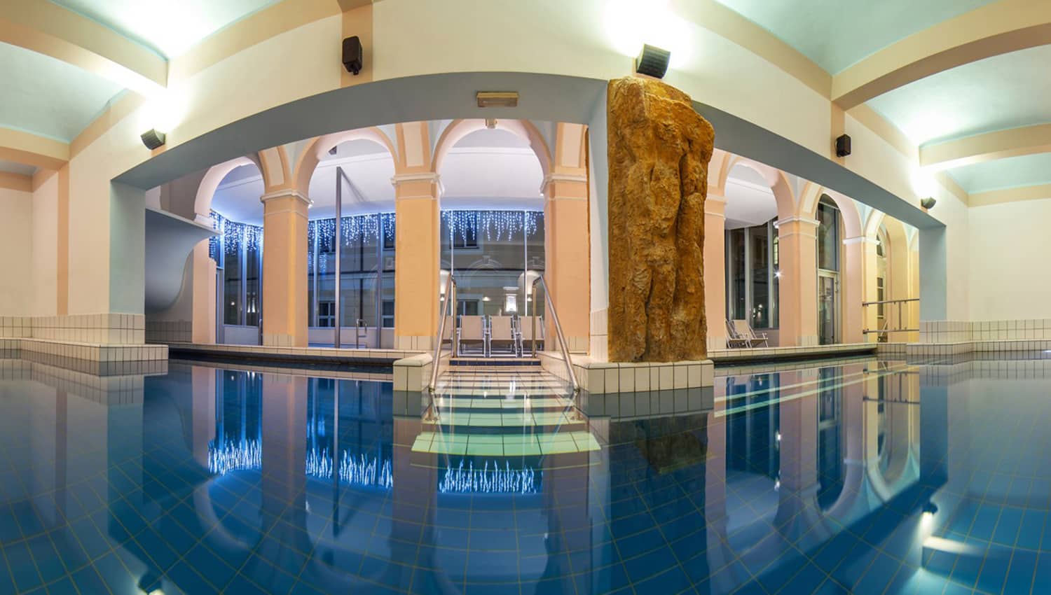 - подводные лежаки-скамейки, различные водные массажные струи, водопады, водные пушки, спортивный бассейн для плавания, детский бассейн, финские, турецкие и инфракрасная сауны, солярий
